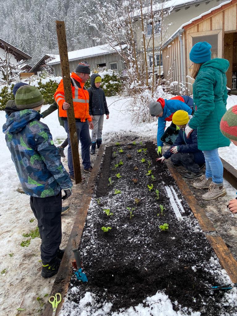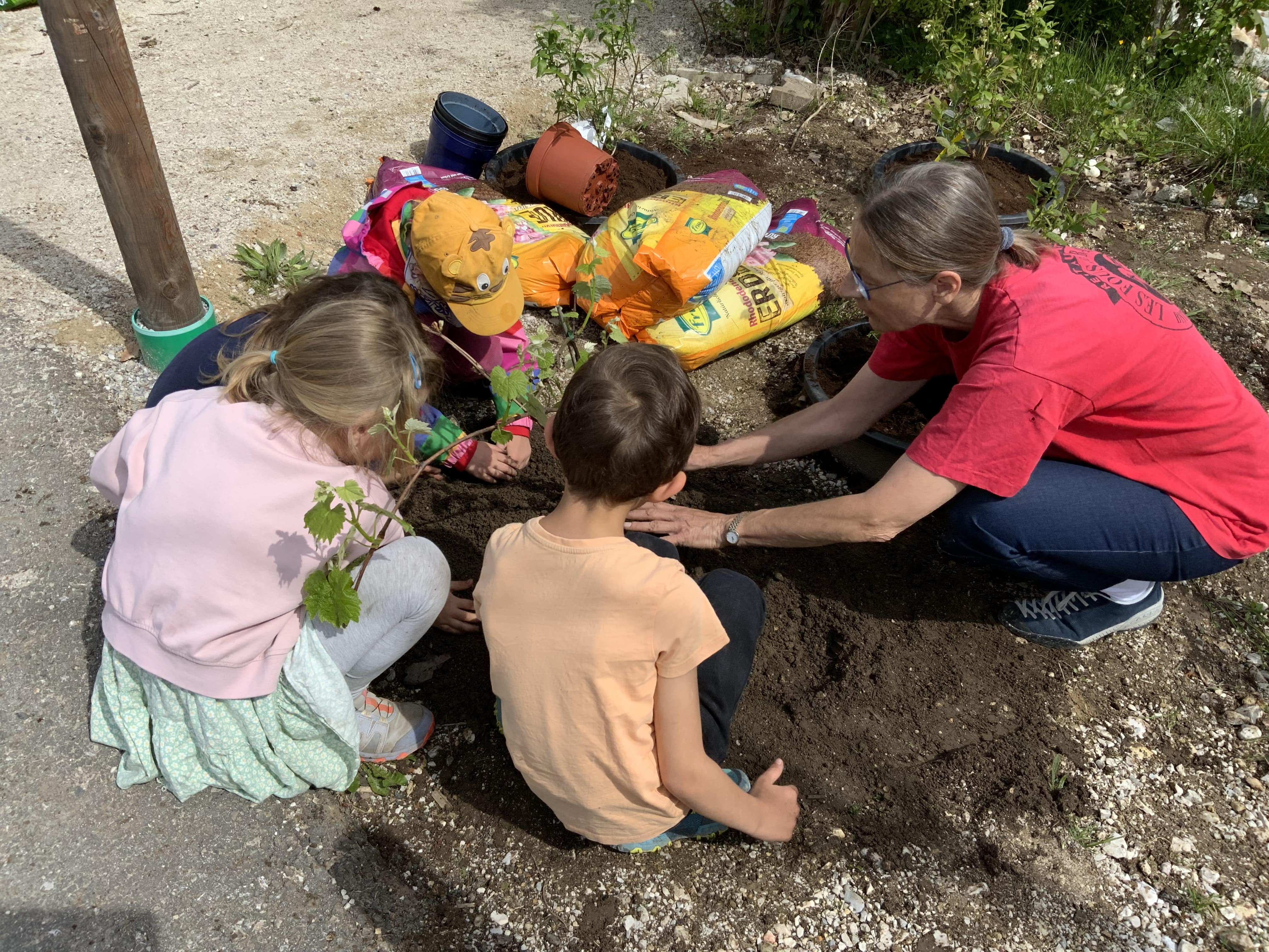 Mit den Kindern der Klassen 1-4 fand am 10.05.2024 ein Pflanztag im Schulgarten statt. Zusammen mit ihren Lehrerinnen kamen die Kinder, um unter Anleitung zu säen und zu pflanzen. Dabei wurden nicht nur Radieschensamen auf Toilettenpapiersaatband gesät, es wurden auch Gemüse, Stauden und Beerengehölze eingepflanzt.