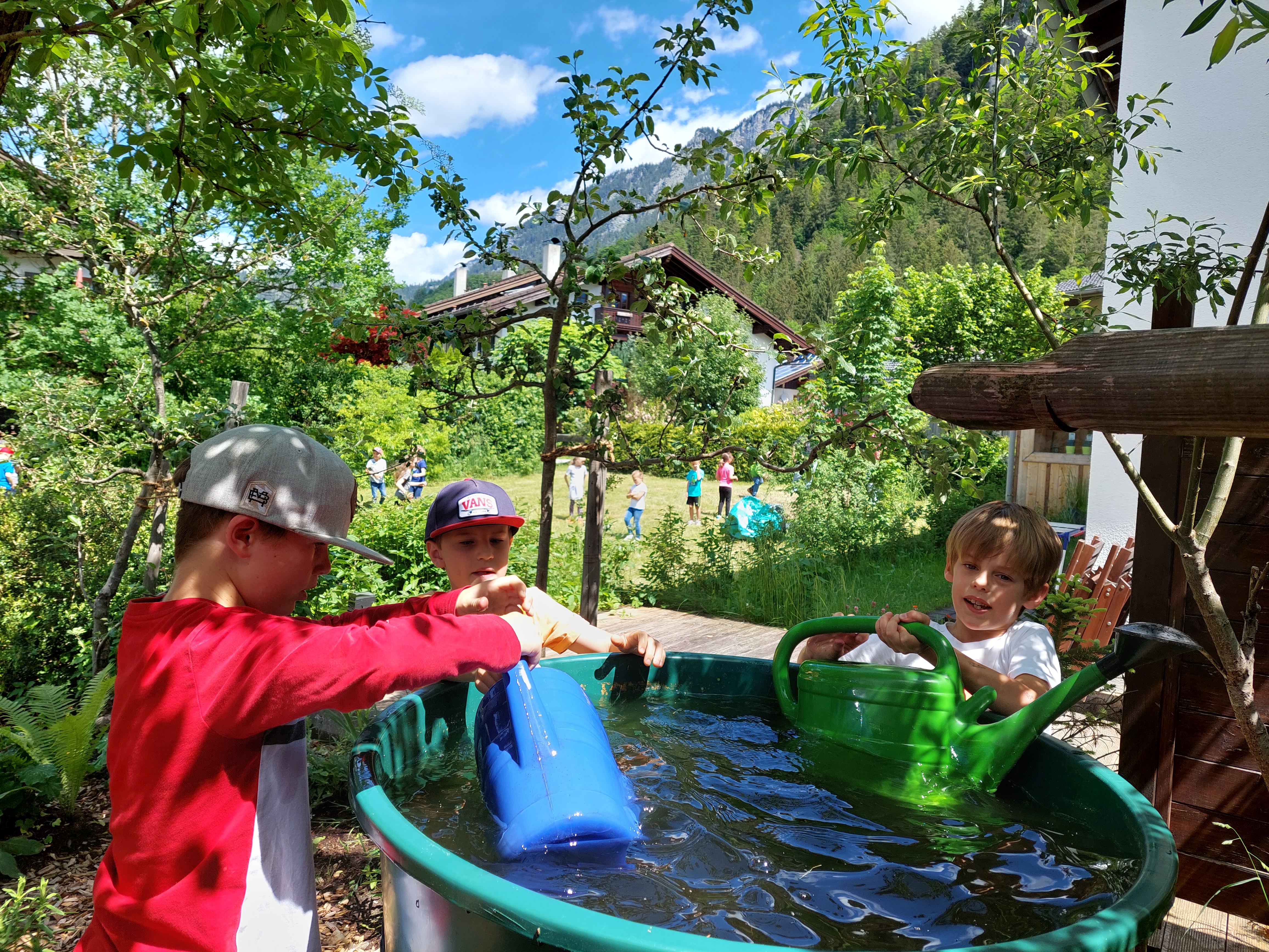 Schülerinnen und Schüler der OGTS-Mittelschule und der OGTS-Grundschule beteiligen sich eifrig an der Realisierung unseres Gartenbauprojektes.