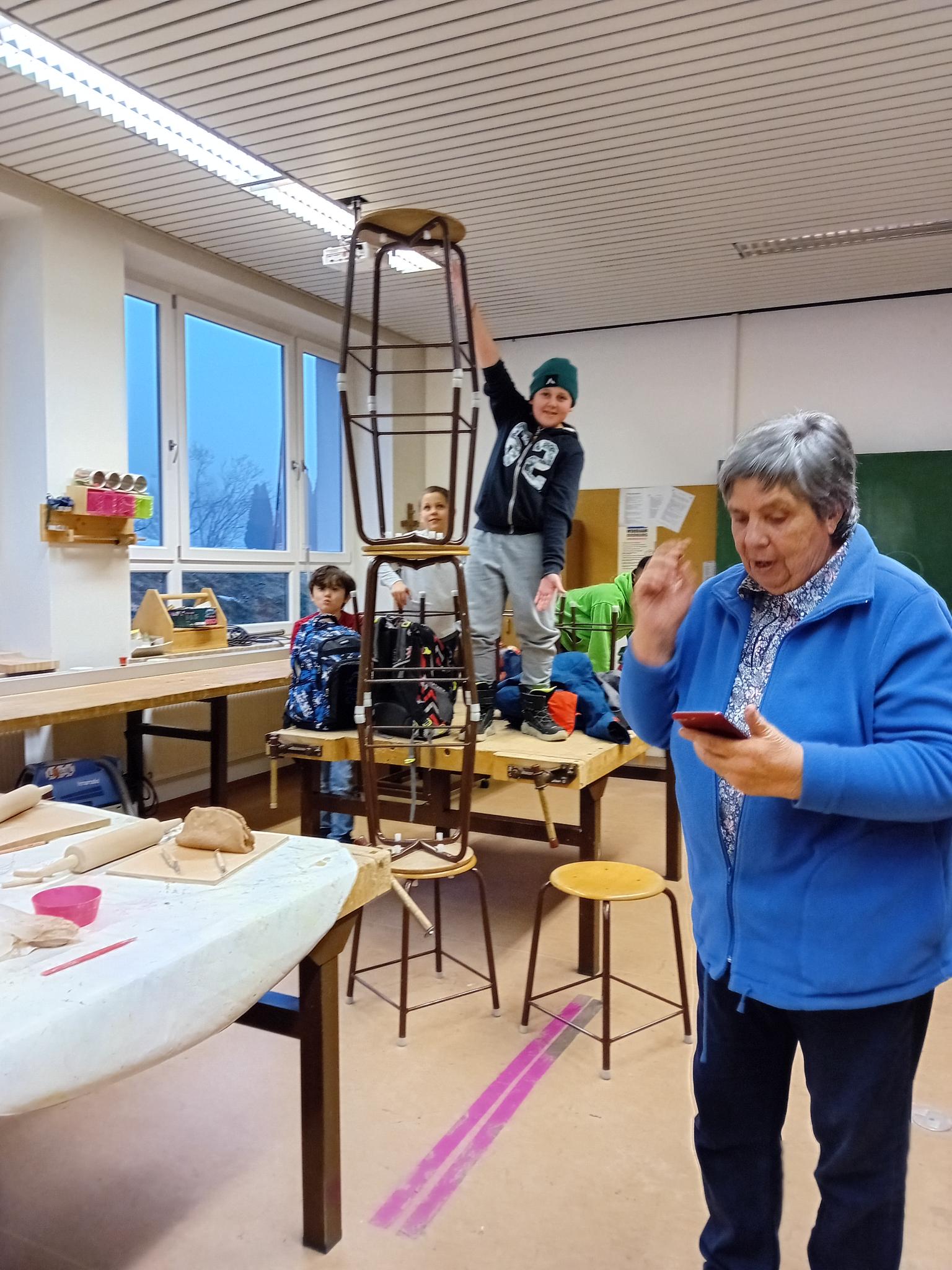 Nach der Hausaufgabenzeit treffen sich Schüler und Schülerinnen der OGTS-MS beim gemeinsamen Sport in der Turnhalle oder zum kreativen Gestalten im “Kunstspielraum“.